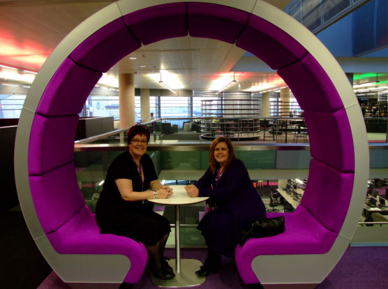 Ange and Michelle in one of the "Collaboration Pods"