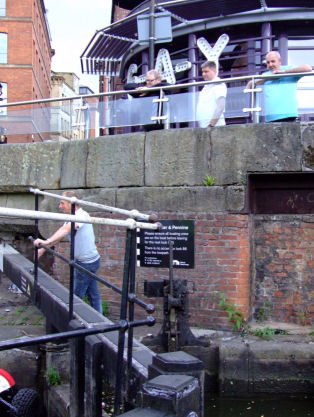 We made good time to Manchester and went into the Castle Quay arm towards Deansgate. The only moorings to be had were at the far end close to Grocers Warehouse where boats turned around. I did not feel happy about mooring there so we retraced our tracks and went into the Staffordshire Arms where there was plenty of space. I couldn't believe how irresponsibly boats were moored at Castle Quay. Some had large gaps between them and a couple even had to be moored at an angle due to the irresponsibility of others. We witnessed one boater struggling to get his elderly dog on board. When you consider that Castlefield is one of the premier city centre mooring destinations in the North West and pride of place goes to scruffy residential boats (complete with the obligatory stacks of pallets and generators running up to 11pm) permanently moored on one of the two working water points it doesn't give a good impression to visitors. Especially when the adjacent Potato and Giant's Wharves and empty and there seems to be no reason why boats cannot moor in them.