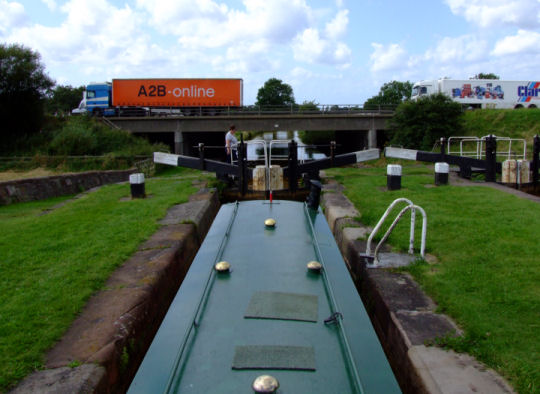 Back to reality - the M6 motorway crosses the canal below Lock 57 on "Heartbreak Hill"