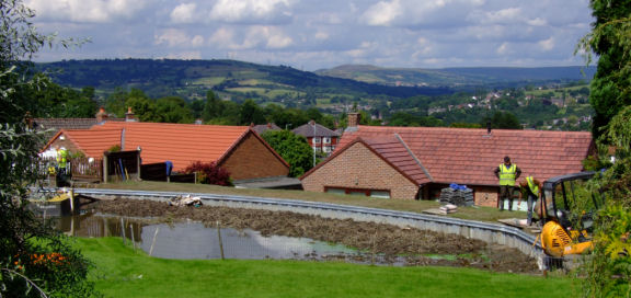 We made mincemeat of the Bosley Locks and moored for lunch at the foot of the flight. The weather was so hot that the girls had a water fight whilst we relaxed in the brilliant sunshine overlooked by Bosley Cloud. Ian chatted to a fellow Hudson owner whose boat we had seen at the Hudson open day a few weeks earlier and as well as chatting I took photographs of the boat which was unusual for a Hudson as it possessed windows! Also at Bosley was a William Piper tug "Barolo" which was unusual in design and featured a country cottage type interior complete with an Aga range. Very nice but a bit too "woody" for our tastes. After lunch we continued on to Congleton where we moored for the night. Overnight the dry spell was broken by showers that had fallen overnight. The morning was dry but we got the impression that the rain was never very far away. On the outskirts of Congleton is Dog Lane cast iron aqueduct that Thomas Telford built using the same castings as at Nantwich and also at Stretton both on the "Shroppie".