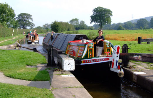 The next morning was sunny again and we retraced our steps back down the Caldon Canal but as we approached the junction with the Trent and Mersey Canal the weather took a turn for the worst and it rained torrentially. By the time we reached Harecastle Tunnel I was well and truly soaked to the skin. We passed through the tunnel without incident although it did take nearly an hour... twice as long as our outward journey to pass through due to craft in front of us going slowly (don't they know that the faster you go in a tunnel the easier it is to steer - due to the "Canal Effect"... one of Archimedes' Principals). We moored for the night in the shadow of Poole Aqueduct and as soon as we tied up and raised the canopy Ange made me strip off my wet clothes, get a hot shower, dry myself and get in bed to warm-up. Before too long I was suitably warmed-up and it had stopped raining so we went for tea at the Red Bull Tavern where we had an excellent meal in pleasant surroundings. The rain kept off the next day which is just as well for we were descending Heartbreak Hill to Middlewich... all in one go! The lovely weather added to the enjoyment of this challenging stretch of canal that was prettier than I remembered it. The duplicated locks meant that "Eclipse" and "Total Eclipse" could descend alongside each other. Ian decided to have a drag race (in narrowboats?) through a couple of them and I will not embarrass Ian by saying who lost but what I will say is that experience triumphed!