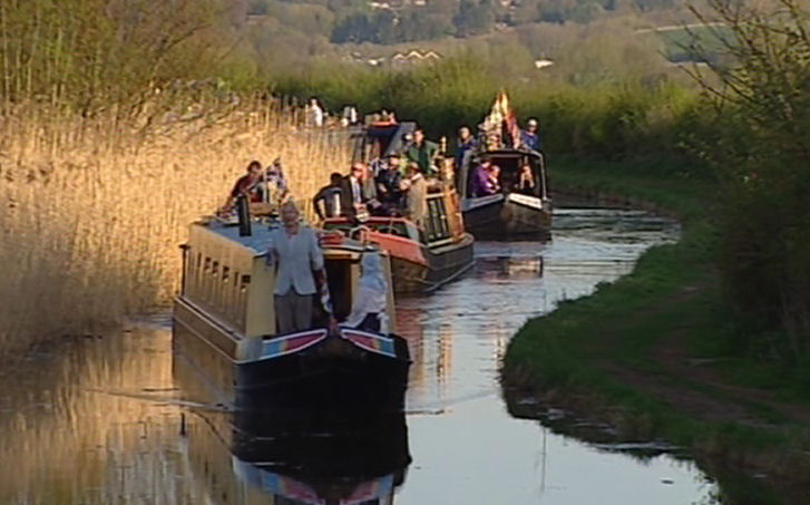 The flotilla of narrowboats heading for the breach location during the opening