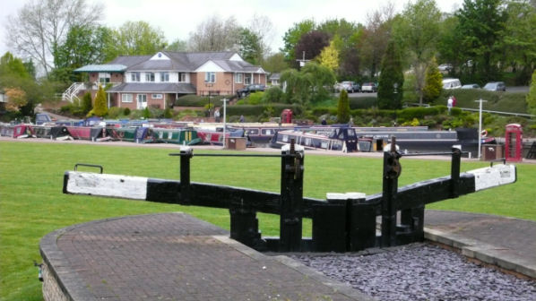 Landscaped lock gates in the grounds of Stafford Boat Club