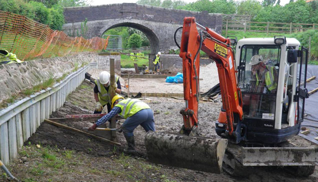 That weekend Ange had ordered tickets to visit the site of last September's breach on the Trent and Mersey Canal at Dutton. We had arranged to go with Ian, Michelle and Popsy and Phil (Big Boy) Anderton had booked for the same time. Access to the breach site is off the A49 where a new road has been made leading to the car park and site facilities. On arrival we reported to the Canal and River Trust personnel and were directed to the lower viewing platform.