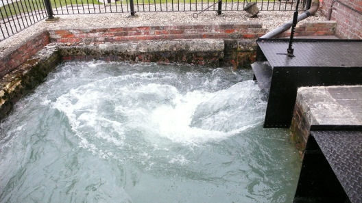 Paul Brown, the project manager of the works explained to us the challenges that they had faced during the reconstruction of the embankment, how they were rebuilding it, the materials being used and what comes next. We were shown a sample of "Enkamat"... a hi-tech, flexible multi-layer membrane that is being used to waterproof and stabilise the channel. Paul explained that they were ahead of schedule and hoped that the canal would be open by the end of May 2013. The visit was most informative and was an insight to how the Canal and River Trust were handling their first major trauma since taking over the running of our inland waterways system last year. We were invited to become Friends of the Canal and River Trust for a few pounds a month... an offer that we took-up and I would encourage every canal enthusiast to join as well. After our visit to the breach site we drove to the Salt Barge pub at Marston for lunch. Inside the pub are many interesting photographs of the area including the adjacent Lion Salt Works, the breach that lead to the construction of Marston New Cut, the nearby meres, etc. The mere is reported to be in excess of 100 metres deep.