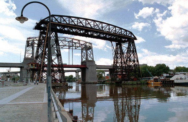 This little known transporter bridge was constructed in 1914 to cross the Riachuelo Waterway in Buenos Aires, Argentina. It is of the truss variety rather than the more usual cantilever type. In 1940 an interesting vertical-lift railway bridge was constructed next to it which can be seen in the background of the more recent photograph below.