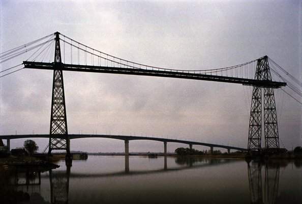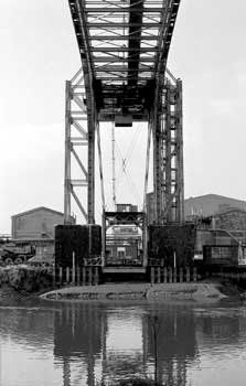 My interest in Transporter Bridges was born initially out of a visit to the Crosfields Number Two Transporter Bridge across the River Mersey at Bank Quay near Warrington. A boating friend... Alec Levac took me to see the bridge and to photograph it one cold winter's morning in 1986 and it made an immediate impression on me. A few months later, I was trying out a new camera and decided to load it with Agfa Dia Direct monochrome transparency film to photograph the Runcorn-Widnes Suspension Bridge for an audio/visual presentation that I proposed to make about the bridge. I was previously aware of the existence of a transporter bridge between Runcorn and Widnes but I came across the remains of the transporter bridge piers whilst taking the photographs for the audio/visual presentation. This, combined with my previous visit to the Crosfields Bridge stimulated my interest in this type of structure. The photographs that I took were later (almost twenty years later) used in both of my books... "The Duke's Cut - The Bridgewater Canal" and "The Big Ditch - Manchester's Ship Canal". There is a website dedicated to the Crosfields Transporter Bridge which can be found at http://www.warringtontransporterbridge.co.uk.