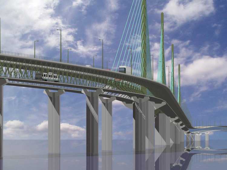 A computer generated image of an earlier design of the Mersey Gateway Bridge