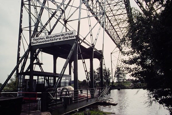 The River Oste, a tributary of the River Elbe, was spanned by this bridge completed in 1909 located thirty miles from Hamburg. Of cantilevered girder construction it has a span of 80 mtrs and was built by the German engineering giant of MAN (Maschinenfabrik Augsburg Nürnberg). The gondola is suspended from rigid steel girders rather than cables. In 1974 the bridge was retired from regular service and listed as a Technical Monument in 1975. The bridge is still in existence and operated occasionally.
