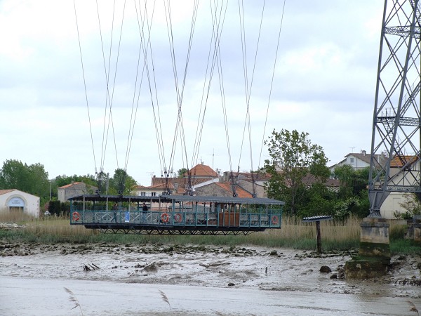 The Rochefort-Martrou Transporter Bridge was constructed by Ferdinand Arnodin to cross the River Charente. It came into service on 8th July 1900 at a cost of 586599 French Francs. It has a span of 139.916 mtrs and is 59 metres in height. The deck beams and suspension were replaced and modified between 1933 and 1934. The bridge came out of service in 1967 when it was superseded by a nearby vertical lift bridge. On the 30th April 1976 it was classified as a historic monument and refurbished in 1996. It is still in use today and is a tourist attraction.