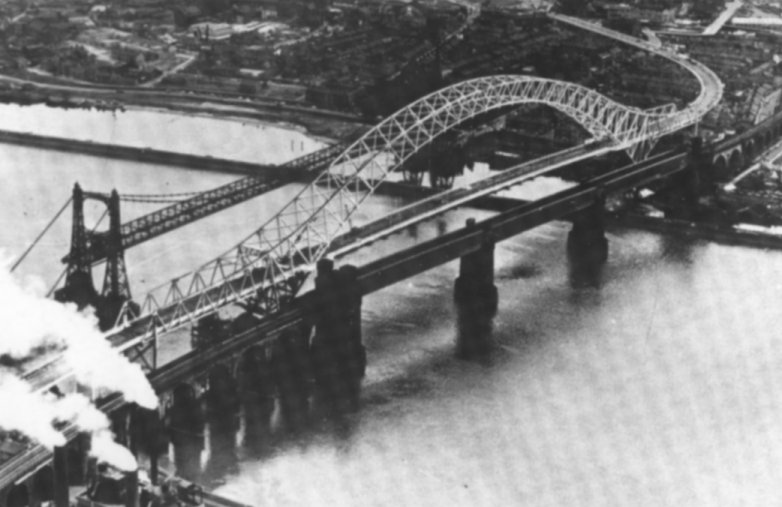 The most prestigious passengers on the bridge were King George V, in 1925, and Queen Elizabeth, the Queen Mother, who visited in 1958. The domes on top of the towers were especially painted for the latter occasion, even though it was known that the bridge had only three years of life remaining.