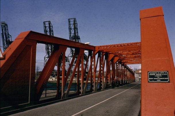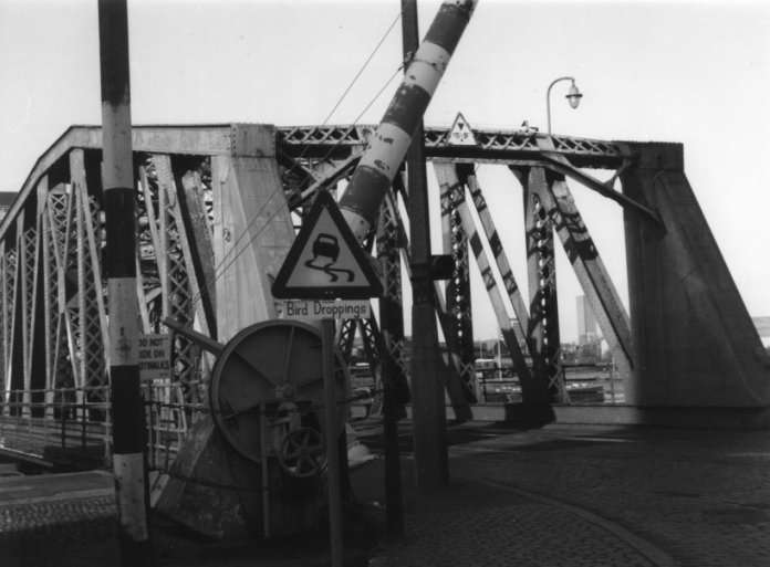It was refurbished in 1991 complete with new foundations and machinery. Throughout the period that it was out of commission, traffic chaos ensued, especially during the rush hour as one of the main routes to and from Wallasey was over the bridge. Traffic had to be re-routed over the Four Bridges or “Penny Bridge” routes. On the Birkenhead side on the boundary of the dock estate was located a traffic island where a policeman was located during daylight hours directing traffic at the Duke Street/Corporation Street junction.