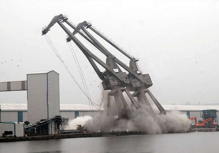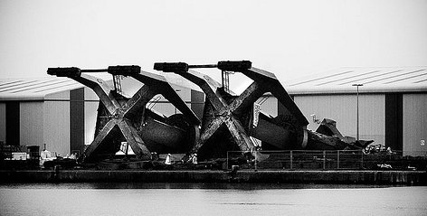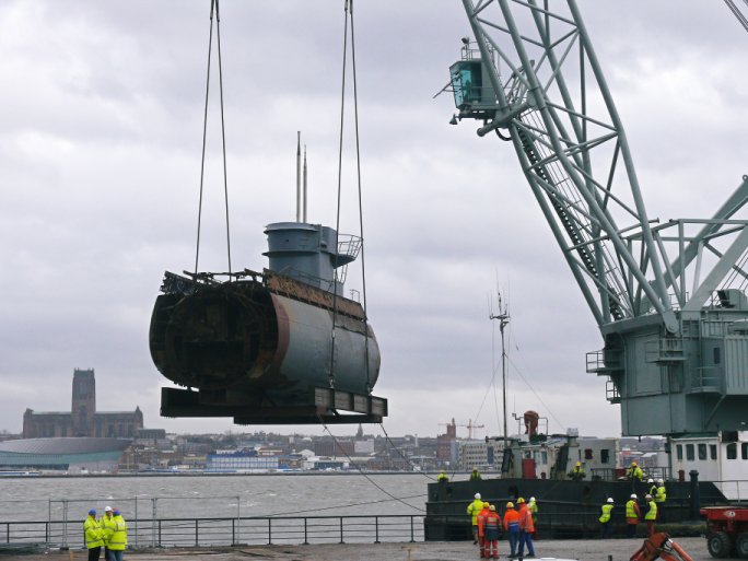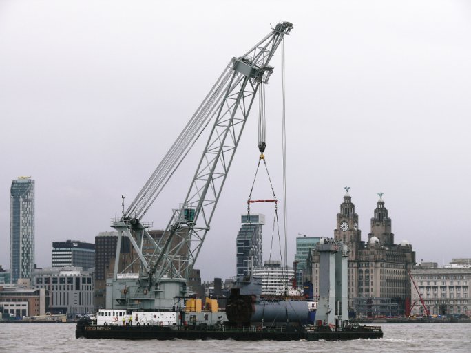 The Mortar Mill Quay Warehouse adjacent to the Tower Road/Dock Road roundabout and U534's temporary home was demolished at the same time. By the 8th March 2008, the cutting-up of U534 was completed and it was awaiting the "Mersey Mammoth" floating crane to lift the sections from the quayside and transport them to Woodside Ferry.
