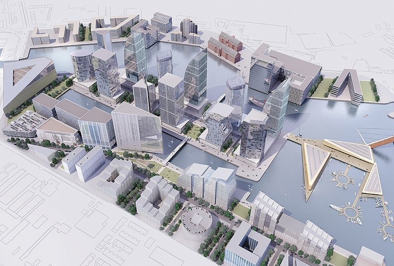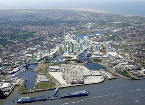A computerised impression of how the Wallasey Pool Regeneration Scheme might look with Vittoria Dock in the centre
