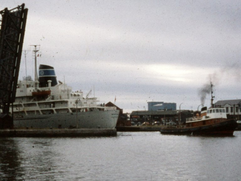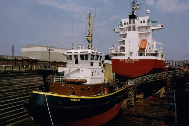 MV "City of Liverpool" and the tug "Waterloo" sharing the dry dock