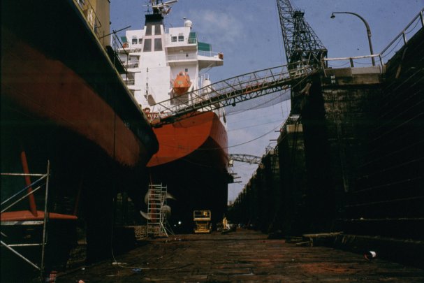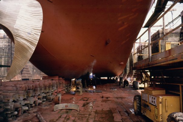 The size of a modern merchant ship has to be seen out of the water to be appreciated