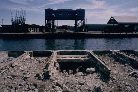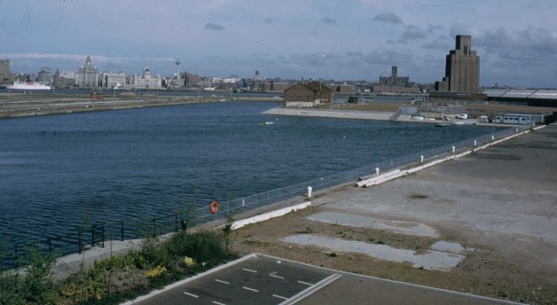 Bidston Dock prior to demolition of the gantry cranes and in-filling