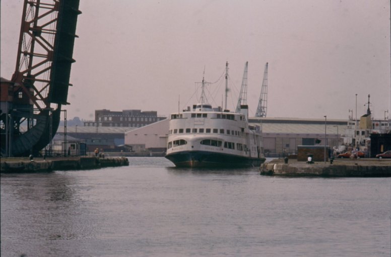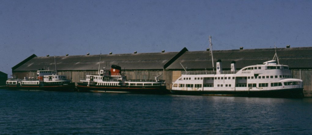 Mersey Ferry boats "Woodchurch", "Overchurch" and "Royal Iris" moored in the East Float in 1987