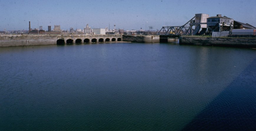 Cheshire's Quay looking towards Beyer and Peacock's dry docks in 1987