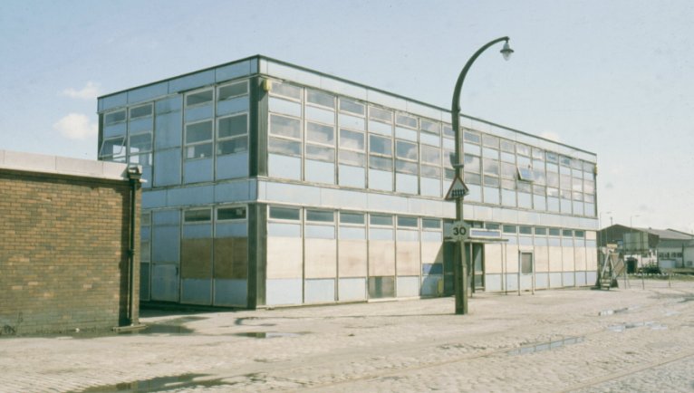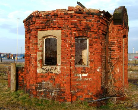 Adjacent to where the Historic Warships collection was kept are what remains of the old Spiller’s Flourmills complex. At one time there were barge wharves running between the mill buildings where barges were loaded with flour and pulled by tugs as far as Manchester along the Ship Canal. The barge docks are now in-filled but their locations can still be traced by following the bollards used for mooring the barges. Some of the mill buildings and adjacent warehouses have been demolished due to fire or redundancy and the remainder are being converted into residential apartments. The sites of the demolished buildings are now a hard standing for timber, steel and other commodities waiting to be loaded onto ships. On the other side of the Dock Road is the now closed Stone Manganese Bronze Company who produced large propellers for ships built at Cammell Lairds and many other ship builders all over the world. Next door to Stone Manganese is McKenna’s Building. This colourful piece of architecture is one of the last remaining dock buildings in the area.