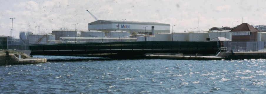 Opposite the dry dock are the molasses berths originally owned by United Molasses but now operated by Tate and Lyle the sugar refiners. Syrups and edible oils are transhipped to the adjacent processing works and dispatched all over the North West. There was another oil processing plant adjacent to the “Penny Bridge” only the oil processed there is of the mineral variety for lubricating all kinds of machinery and vehicles. Mobil Oil had a presence on this site for many years and refines raw products before distributing them all over the country. In 2003, Mobil Oil closed their oil processing plant and sold the site to Western Ship Repairers... now Cammell Lairds.