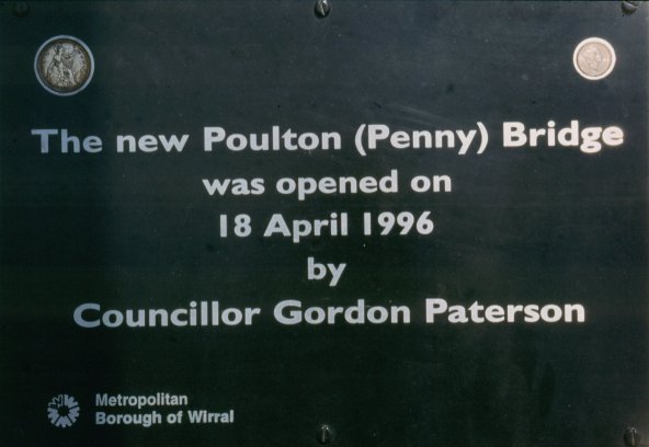 There has been a bridge on the site of the “Penny” or Poulton (to give it the official name) Bridge for many years. The original wooden bridge was replaced with a steel swing bridge which was prone to sticking in hot weather due to expansion of the structure and was replaced in 1994. The new bridge was built at Cammell Lairds Shipyard and floated to site on a barge before being lifted into position by the giant “Mersey Mammoth” floating crane.