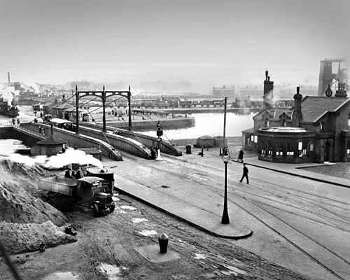 The original Duke Street Bridge viewed from the Birkenhead side of the Pool