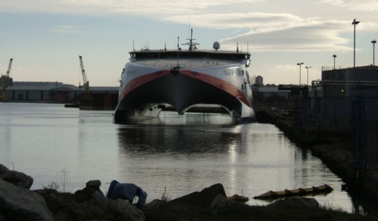 The Steam Packet Company's "Seacat" awaiting admission into Bidston Dry Dock