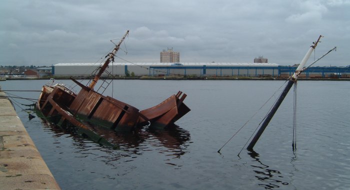 The Historic Warships Trust went into liquidation in February 2006 and due to the site required for the adjacent Spillers Flourmill conversion to a housing development the ships were moved to Cavendish Quay temporarily, until a new permanent home could be found. The U534 was loaded onto special bogies and moved a couple of hundred metres down to Mortar Mill Quay. A shock announcement that H.M.S. Onyx had been sold and was to be moved to Barrow-in-Furness came at the beginning of June 2006 and it looked as though this heralded the break-up of the collection. This turned out to be correct. HMS Plymouth was subsequently moored in Vittoria Dock until it was sold for scrap. This took place at a Turkish scrap yard in 2014. H.M.S. Bronington was towed to Cavendish Wharf where it has rotted beyond repair and is scheduled for scrapping as well. LCT 7074 had sunk at the small craft moorings adjacent to the Spillers Flour Mills development and was raised in 2014 then transported to the National Museum of the Royal Navy where it is undergoing restoration.
