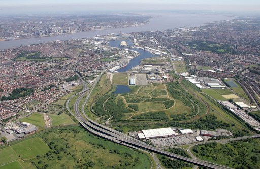 This aerial photograph illustrates Wallasey's separation from the rest of the Wirral Peninsula