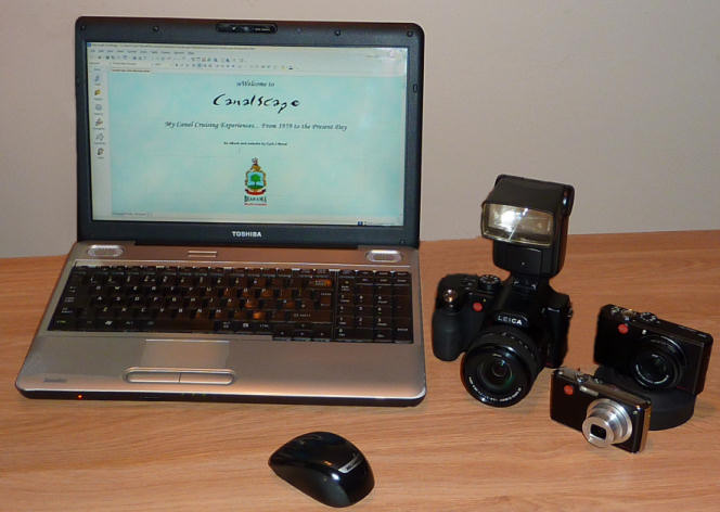 This e-Book and the subsequent website was written in HTML format using Microsoft Frontpage and Expression Web (FrontPage reborn) on my Toshiba Tecra and Satellite laptop computers (in some very unusual and beautiful locations). As well as on the Internet "Canalscape" can be viewed in eBook format on a computer or a dedicated eBook reader such as the Amazon Kindle or W H Smith's Kobo, on an iPad or Android equipped tablet with the necessary software (app) downloaded from Google Play (formerly Android Market). If you would like a copy of the latest version of "Canalscape" (and its sister website... "Diarama" plus a couple of extras not published on the Internet) on CD contact me via e-mail at cyril.wood@virgin.net for details. If you would like to know more about my interest in photography, the photographs used in this website and the equipment used in taking them then visit the "Canalscape Photography", "Photographic Experiences" and the two "Diarama" and "Canalscape Gallery" sections or "Photography in One" which covers photographic history, theory and techniques.