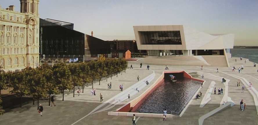 A computerised image showing part of the new canal at Liverpool's Pier Head...