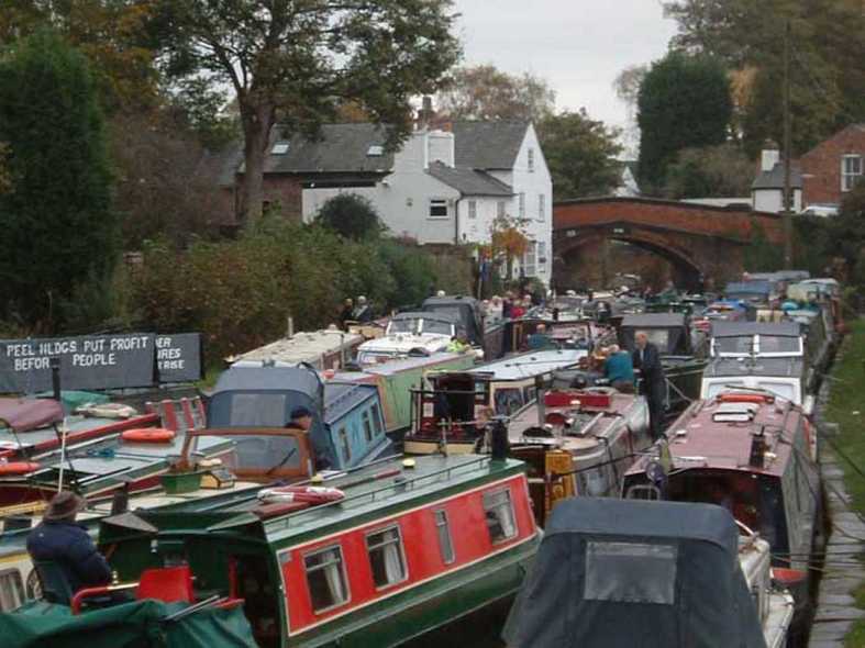 A protest rally at Lymm where boaters were campaigning against rising mooring charges on the Bridgewater Canal