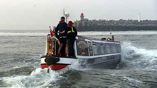 Terry and Monica Darlington on board the Phyllis May approaching Calais