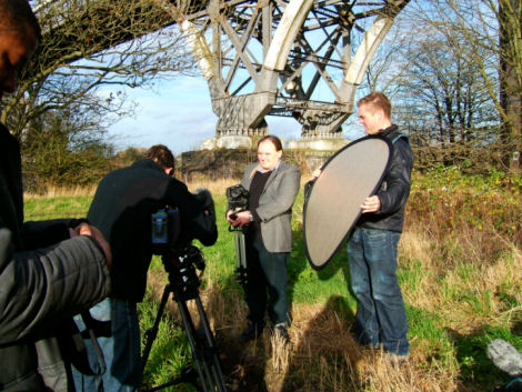 Cyril being filmed at Warburton High Level Bridge for BBC Learning's "Webwise" project...
