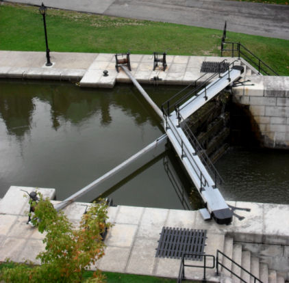 A typical Rideau Canal lock complete with swing bridge over the lock chamber