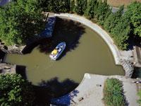 Two converted railway locomotives provide the motive power for the Montech Water Slope