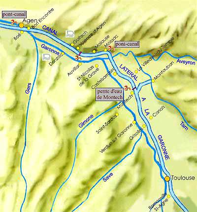 The Rivers Lot and Baise and the Canal du Lateral at Agen