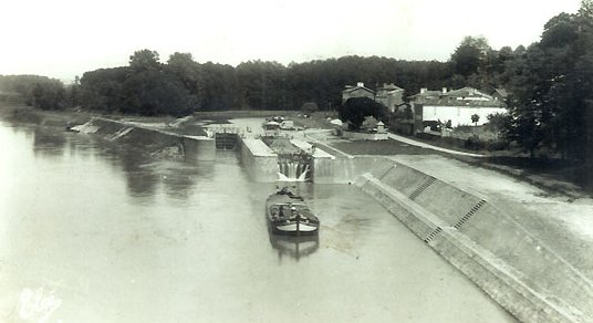 This section deals with the description of the Canal du Midi's route and is accompanied by maps. The route will be described from west to east. The route starts at the Atlantic port of Bordeaux where the tidal River Garonne meets the ocean. The river was originally navigated as far as Toulouse but due to the unpredictable water levels in the river a "collateral" known as the Canal Lateral or Canal du Garonne was constructed in the 1800s alongside the river which removed the problems associated with river navigation. The entrance locks at Castets-en-Dorthe in Aquitaine are illustrated below.