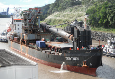 MV "Tertnes" (according to it's website... always ready to rock) is a flexible fall-pipe vessel used in the canal's expansion programme (6)