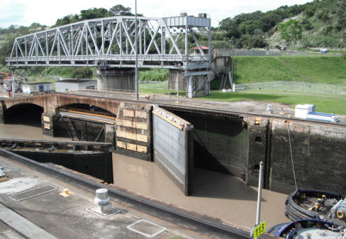 This photograph illustrates a Panamax vessel fitting snugly in Gatun Locks (2)