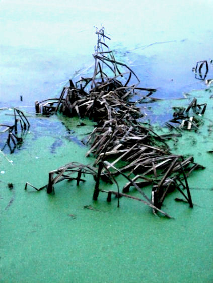 Heron on Sunken Boat - Billinge Green Flash - Trent and Mersey Canal - 2013 - Panasonic Lumix DMC-TZ6