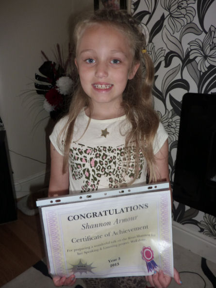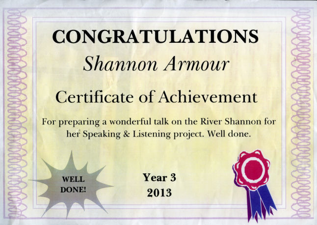 Shannon received a Certificate of Achievement and a Gold Star from her teacher... Mr Burrows, for her project