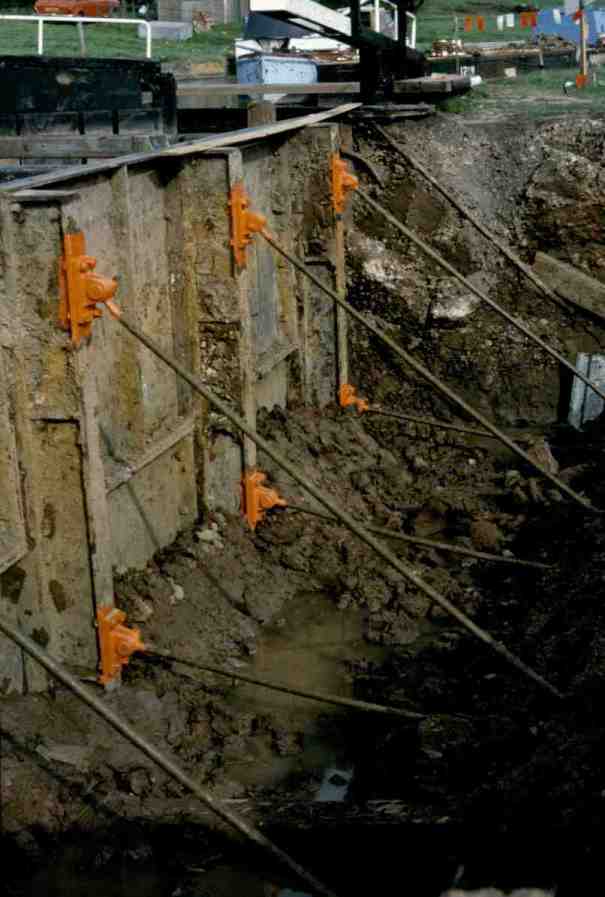 Tie bars connecting the side plates to the foundations of Beeston Iron Lock