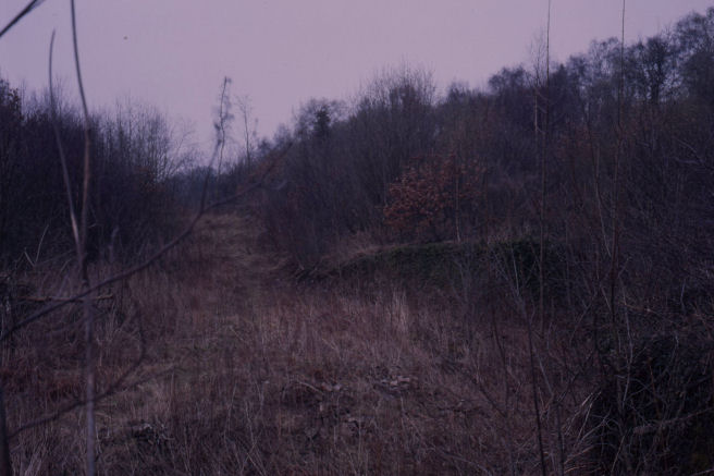 The terrain through which the tunnel would pass can be seen in the distance and notice the "towpath" on the right
