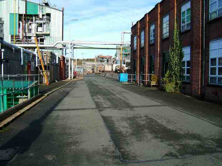 the in-filled line of the canal runs towards the Flexsys Complex |