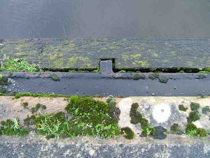 A close-up of the top of the cast iron trough that lines Chirk Aqueduct