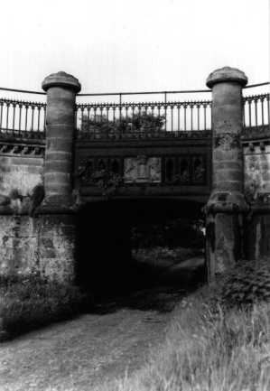 ...to the remains of a canal bridge. The remains (7) consist of the side wings and the bricked-up bridge hole. Adjacent to the bridge is an inspection hatch in the ground and, if lifted, water and the remains of the canal bed can be seen.